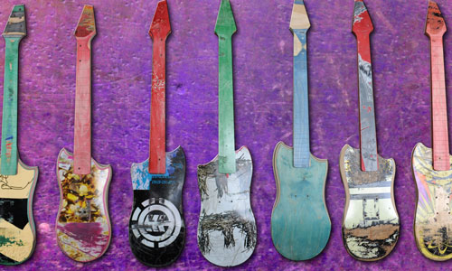 Guitarras eléctricas echas con tablas de skate en desuso.