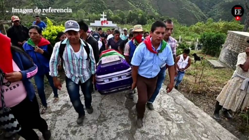 Al entierro del joven, o ‘la siembra’ como le dicen los originarios, acudieron alrededor de 500 personas y el féretro fue envuelto con una bandera roja y verde, los colores de la Guardia Indígena, colores que indican que en el ataúd va uno de los suyos.
