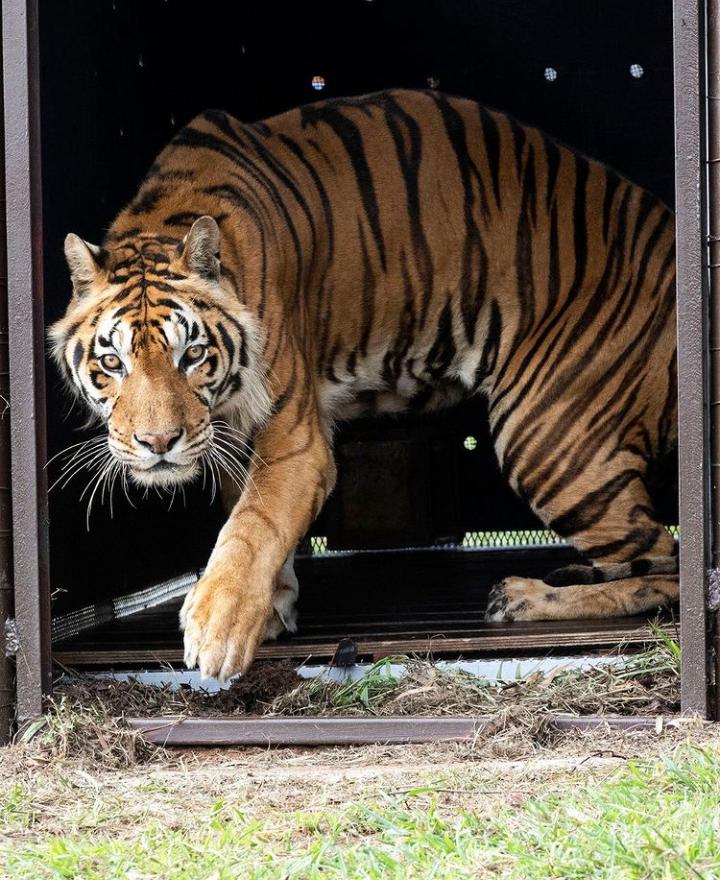 Se trata de cuatro tigres que durante, al menos, 15 años vivieron encerrados en una jaula de 75 metros cuadrados en un campo de San Luis y que, finalmente, fueron trasladados a un santuario de Sudáfrica.