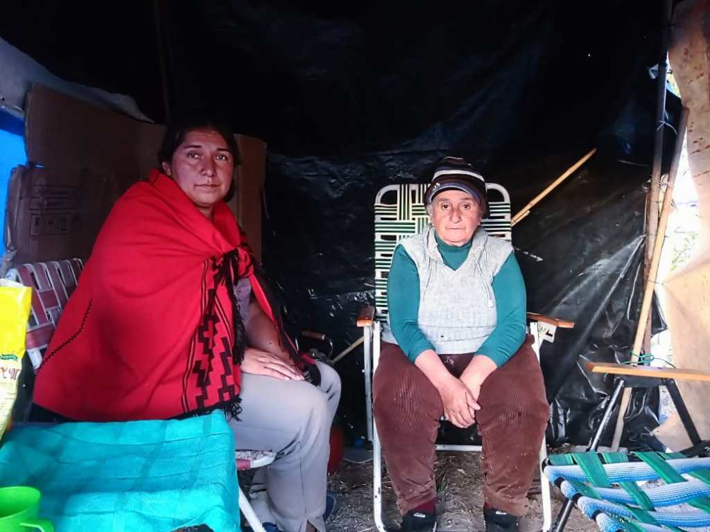 Luego, este medio pudo dialogar con las mujeres que hace dos semanas reclaman por sus animales y otras injusticias cometidas por Freixes. Durante el día, Juana y Noemí se resguardan en su ruca y por la noche duermen en un auto.