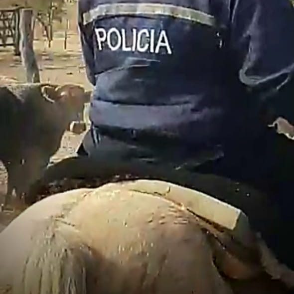 “Están juntando los animales desde el miércoles -de la semana pasada-, está la policía montada, de civil y motorizada, junto a los trabajadores de acá, que responden al señor Freixes, juntando los animales: les están poniendo una vacuna de oficio y los están marcando”. “Hay unos 20 policías montados que están juntando los animales”, explica Noemí.