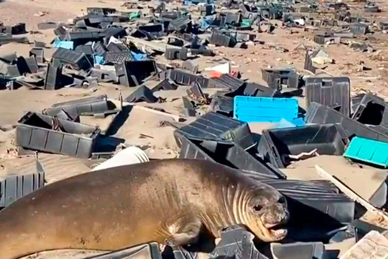 Hace unos el medio estatal ruso RT –Russia Today – difundió un video en el que se ve a los lobos marinos de Península Valdés arrastrándose en una playa abarrotada de cajones y otros desechos plásticos. La diputada nacional Graciela Camaño re-subió el video en twitter y la situación que se vive en el lugar hace ya varios años volvió a mediatizarse. ¿Y si hacen algo? Le preguntaba la congresista al ministro de ambiente de la nación, Juan Cabandié, al gobernador de Chubut, Mariano Arcioni, y a la Secretaría de Agricultura, Ganadería y Pesca de la nación.