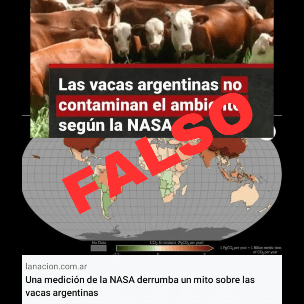 Recientemente medios de comunicación masivos y la Embajada Argentina ante la Unión Europea afirmaron que “las vacas argentinas no contaminan” y que “la producción ganadera como se hace en la Argentina es parte de la solución al cambio climático”, citando como fuente a un estudio de la NASA. Sin embargo, hoy la agencia espacial estadounidense desmintió dicha afirmación.