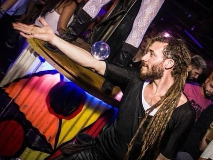Matías Giachino es uno de esos artistas que nunca se quedan quietos, a veces hace de cantor, otras de malabarista, acróbata, guitarrista, actor o bailarín, según lo ameriten las circunstancias. Cuando no está ensayando las canciones de La Planta, se lo ve colgado en el domo de la Eco Aldea haciendo acrobacias, malabareando con sus vecinos, pintando una escenografía o pensando en el vestuario de su próxima intervención.